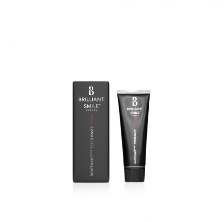 Egenskaper: Brilliant Smile Sweden, det svenska tandblekningsföretaget, har tagit fram en intensivkur för snabb borttagning av ytliga missfärgningar och beläggningar. Formulan löser upp ytliga missfärgningar med hjälp av aktiva ingredienser, helt utan någon skadlig slipverkan. Tandkrämen används 2 veckor i sträck morgon och kväll, och därefter används Brilliant Smile Whitening+ Toothpaste som underhåll. Tandkrämen innehåller kaliumnitrat som har god effekt mot ilningar och isningar, samt fluor som motverkar karies och plack. Den gör skonsamt rent tänderna och ger en ren och fräsch känsla i munnen som varar hela dagen.