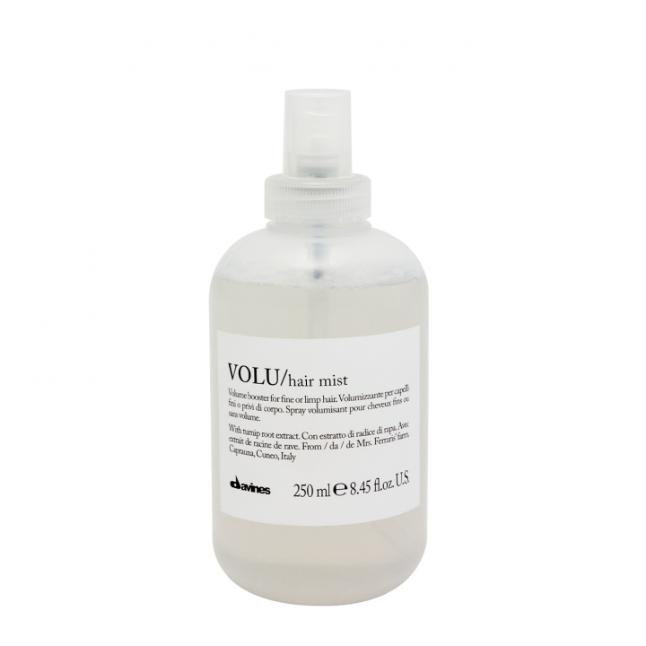 Med stor omsorg, vision och passion kombinerade Davines vetenskap och tradition med örter, frukt och blommor från medelhavet för att skapa hårvårdsserien Essential Haircare. De tog fram ett sortiment med produktfamiljer för daglig vård, var och en med sitt eget smeknamn och ambitionen att leva upp till vad namnet lovar. Varje familj består av utvalda aktiva innehållsämnen som ger omedelbara och riktade effekter för särskilda hårbehov, och de är dessutom berikade med naturliga, antioxidativa och skyddande egenskaper. Doften som karaktäriseras av Volu serien är blommig, grön och har en aromatisk ton.