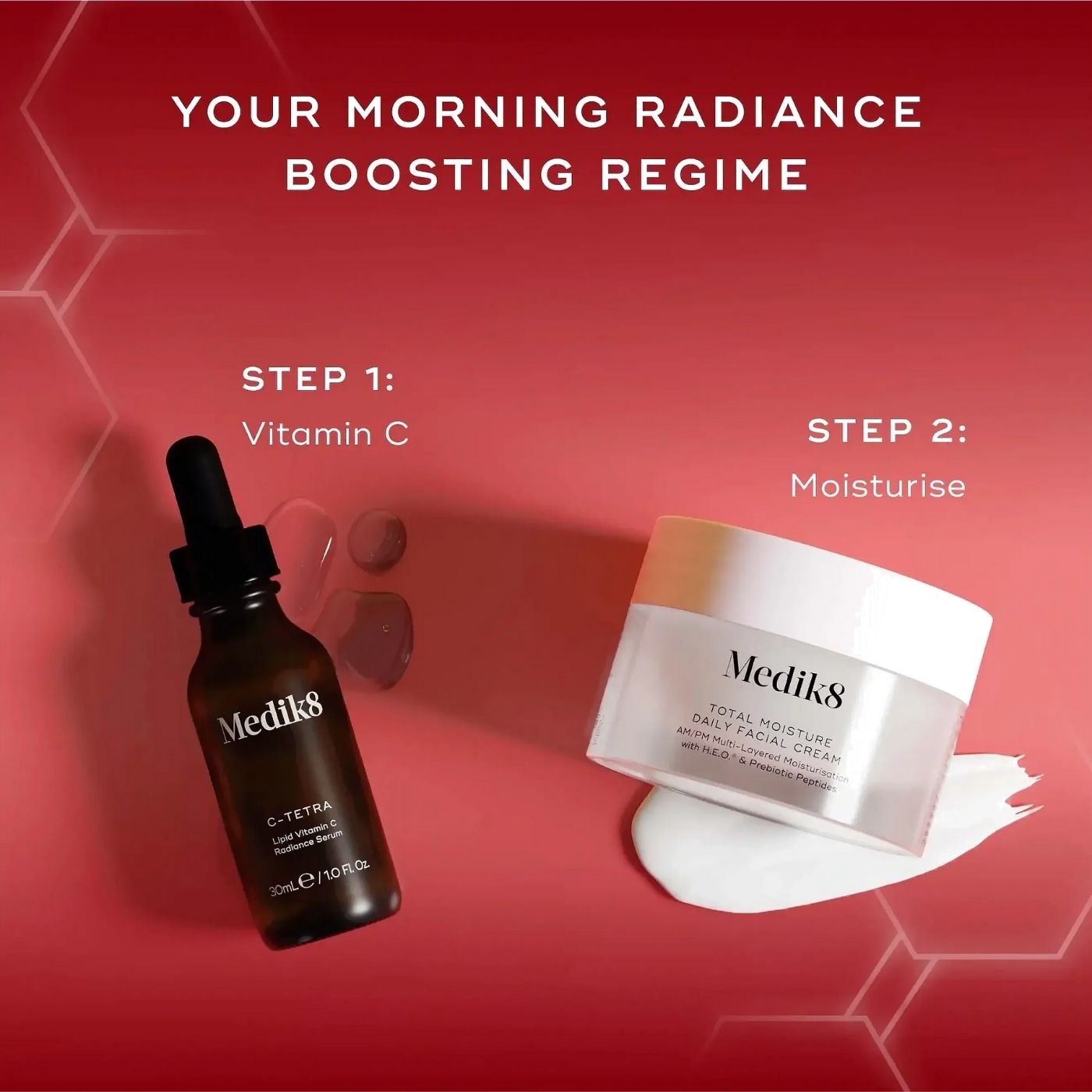 Egenskaper: C-Tetra ger din dagliga dos av stabiliserat vitamin C, skyddar mot miljömässig stress och förstärker lystern. Total Moisture Daily Facial Cream kapslar in fukt i upp till 100 timmar och stärker hudbarriären med flerskiktad fuktteknologi.